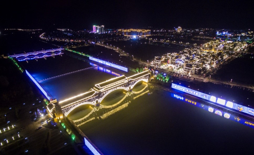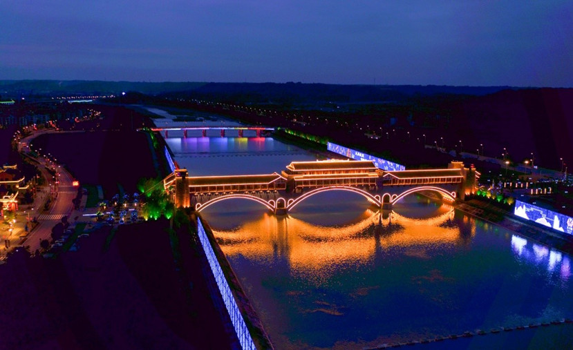 此次改造在兼顧傳統(tǒng)藝術性與創(chuàng)新技術性的協(xié)調與平衡的前提下,結合北川當?shù)氐奈幕睾徒ㄖ攸c,確定以新縣城景觀帶為橫軸、安昌河沿岸為縱軸,兩軸燈光與金融街建筑帶形成具有韻律感的梯次分布為脈絡展開北川新縣城的城市亮化。