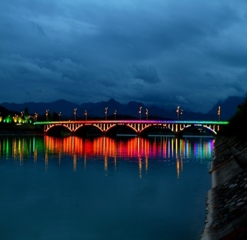 2016年8月,為迎接“2016年綿陽旅游發(fā)展大會暨首屆羌族沙朗節(jié)”盛大開幕,華體照明承接了新北川縣城夜景照明改造工程。