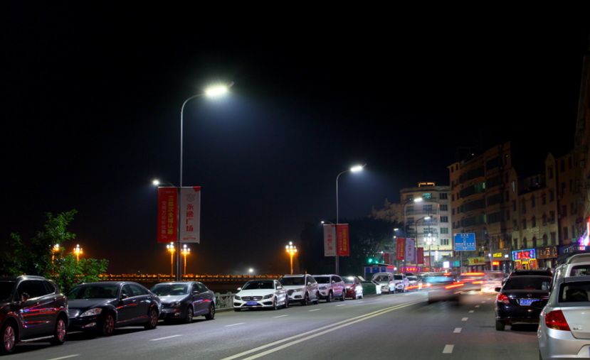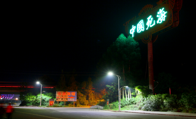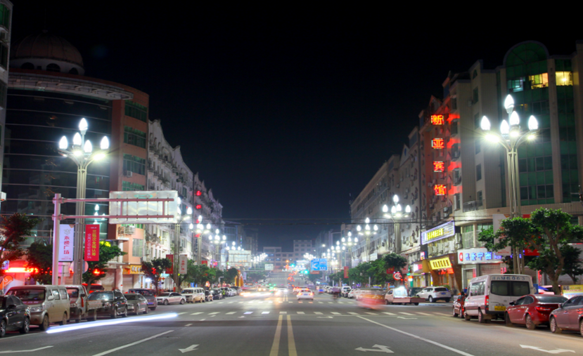 文化產(chǎn)業(yè)園濱江北路,位于中國死海景區(qū)門口路段,安裝了64套高低臂LED路燈。