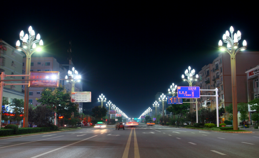 蓬萊大橋和蓬萊路,作為連接老城區(qū)和新區(qū)的主干道,安裝了50套四叉五火玉蘭燈。