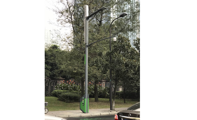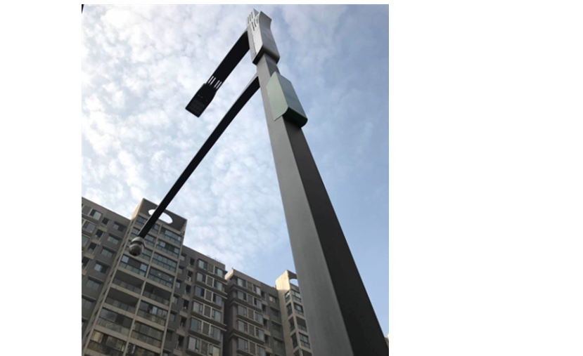 本次試點工作共安裝多功能智慧路燈兩柱。該燈以現(xiàn)代式的燈桿為主體,采用帶智能控制的LED照明,具有良好的節(jié)能減排作用。此外,本次安裝的智慧路燈巧妙的加載了新能源汽車充電、視頻監(jiān)控、環(huán)境信息監(jiān)測、WIFI覆蓋、手機補電及便民觸控屏等功能,實現(xiàn)了科技與設計的完美融合。