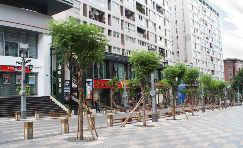 由于金港國際步行街屬于國際化綜合性商業(yè)物業(yè)區(qū),又距離重慶國際新機場較近,人流量車流量都很大,對燈光的要求較高?!懊駠L情”燈高16.5米,主光源和裝飾光源皆采用LED,彰顯節(jié)能環(huán)保理念?!懊駠L情”燈既滿足了步行街的照明需求,又顯示出濃郁的民國風情,形成了獨具特色的城市景觀。