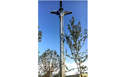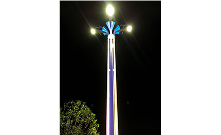 綻放”景觀燈的設計靈感來源于綻放的花朵,燈高12米,燈體裝飾節(jié)日氛圍燈帶,燈頭采用LED光源。整燈是現(xiàn)代制造工藝綻放的藝術之花,將功能與景觀照明完美結合。