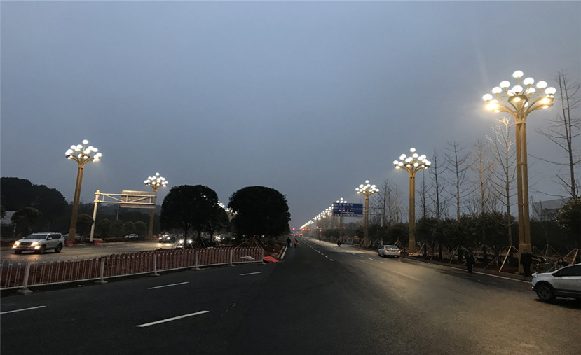 “芙蓉朝暉”以芙蓉花為元素進行設計,芙蓉花是湖南省的省花,燈葉在保證道路照明基礎上,頂部的裝飾性照明,根據(jù)芙蓉花的外形進行設計,體現(xiàn)出湖南特色,美觀又端莊。