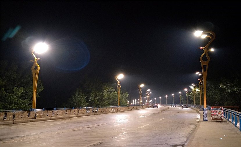 安裝在鳳臺(tái)縣淮河大橋上的“鳳舞九天”地域系列文化路燈,白天猶如腳踩祥云的鳳凰,也寓意鳳臺(tái)縣經(jīng)濟(jì)發(fā)展社會(huì)穩(wěn)定的太平盛世。