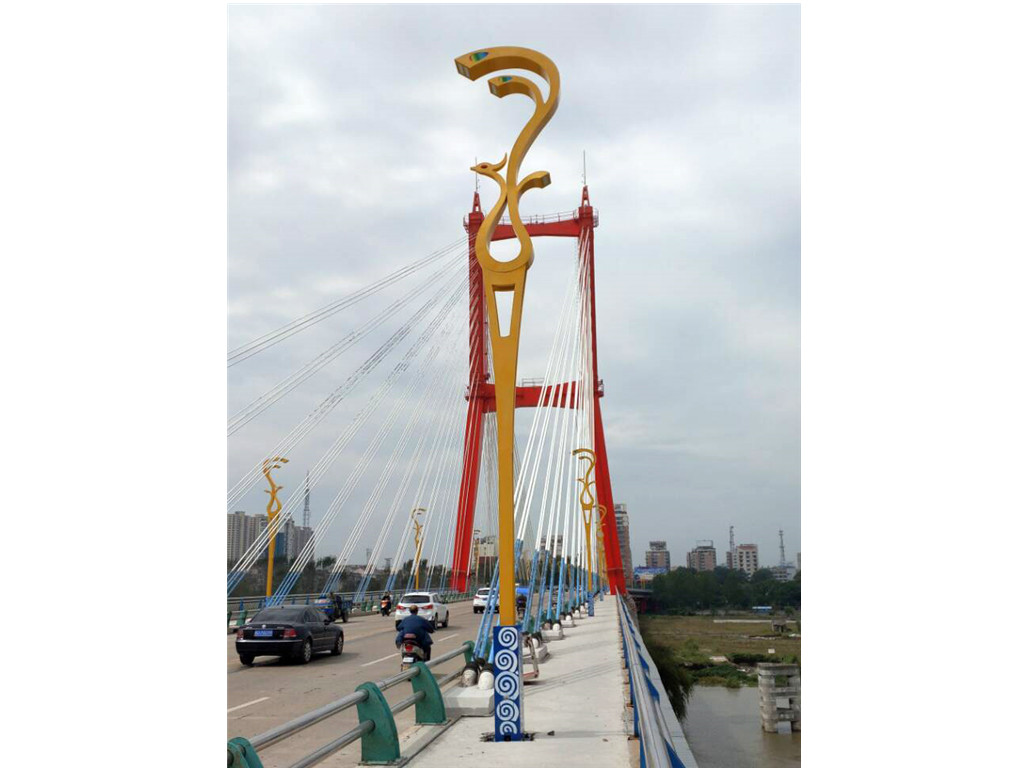 華體科技根據(jù)鳳臺(tái)縣名稱的由來,為鳳臺(tái)淮河大橋定制設(shè)計(jì)“鳳舞九天”文化路燈。