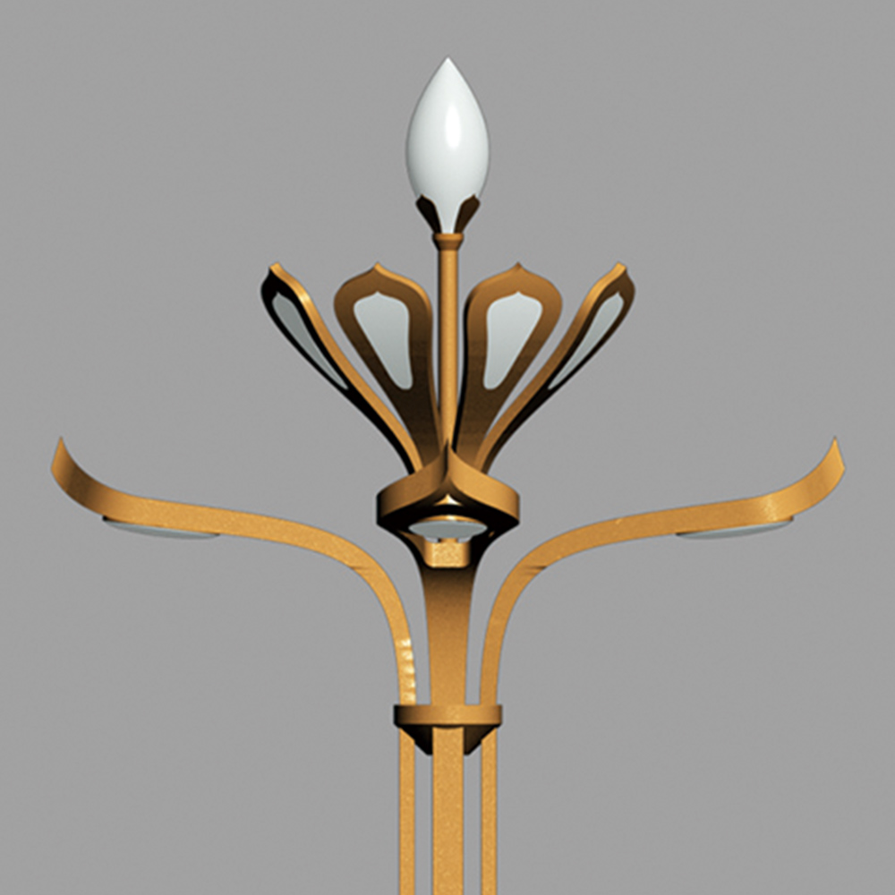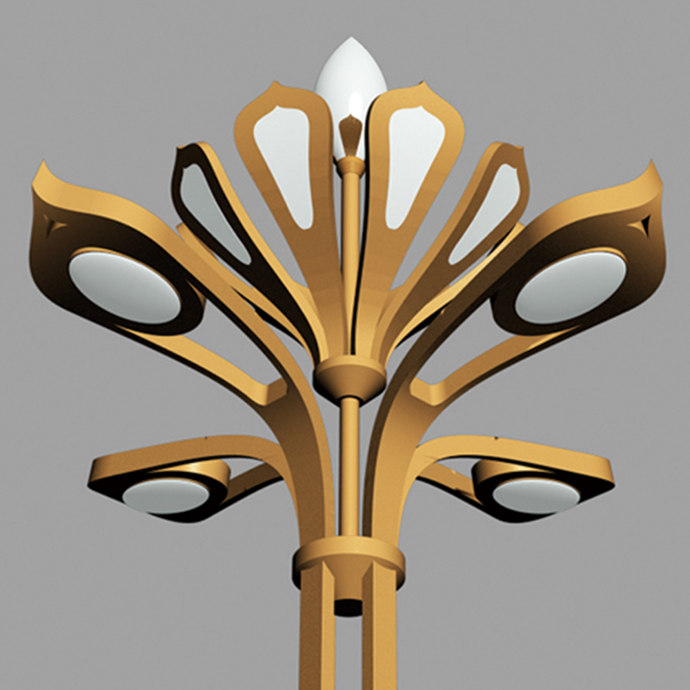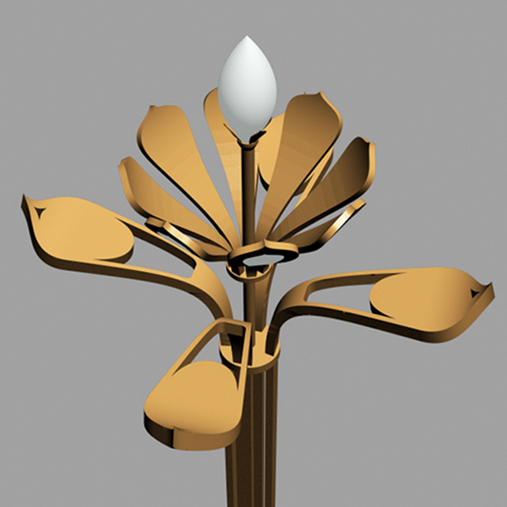 燈型整體造型以蓮花含苞待放的外形為設(shè)計元素,結(jié)合華燈造型特征,達(dá)到功能與景觀照明為一體的戶外燈具;