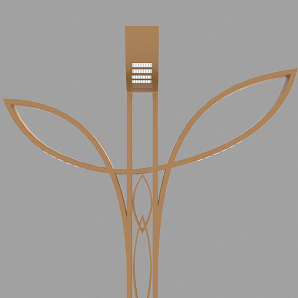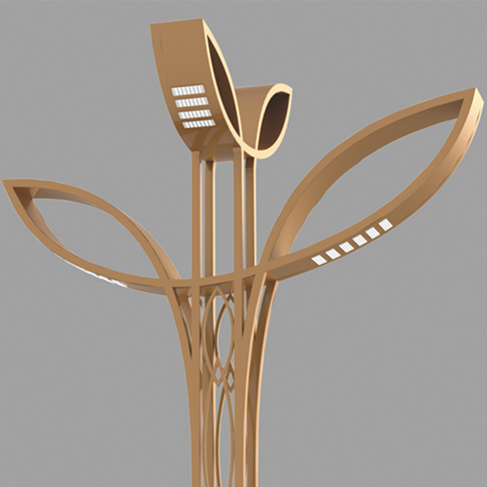 燈型主體、桿體、底座材質(zhì)為金屬鋼件表面熱度噴塑,燈具為鋁件,可配光源LED/鈉燈。