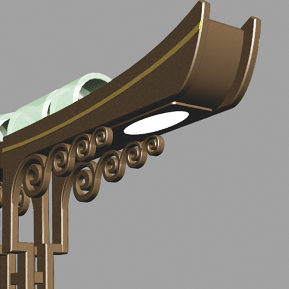 燈型主體、桿體、底座材質(zhì)為金屬鋼件表面熱鍍噴塑,可配光源LED/鈉燈。
