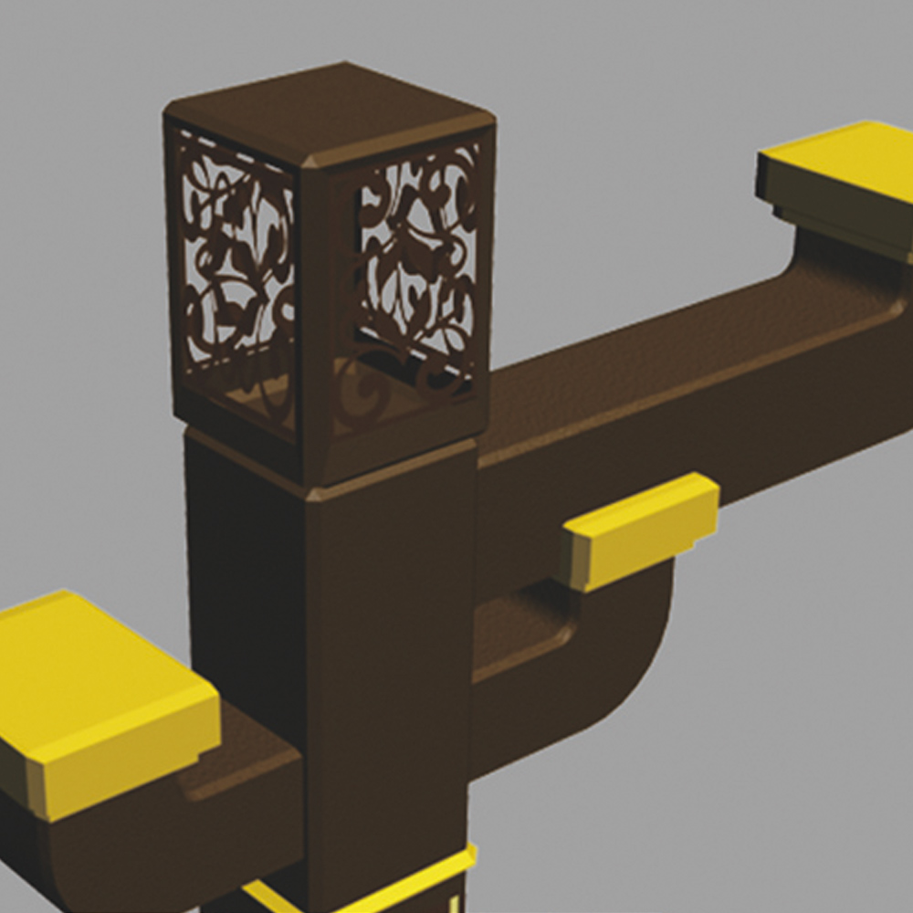 燈型主體桿體底座材質(zhì)為金屬鋼件表面熱鍍噴塑,可配光源LED/鈉燈。