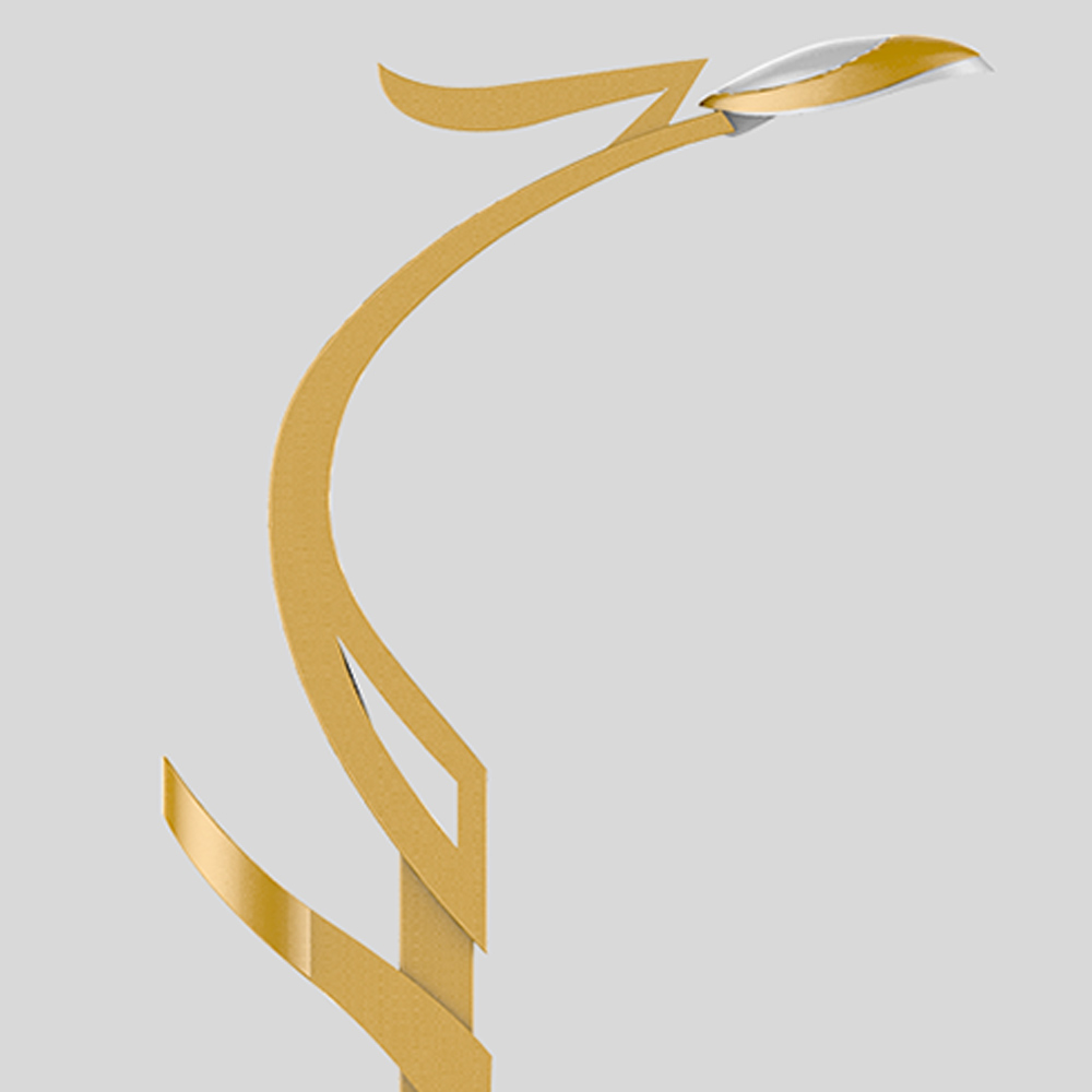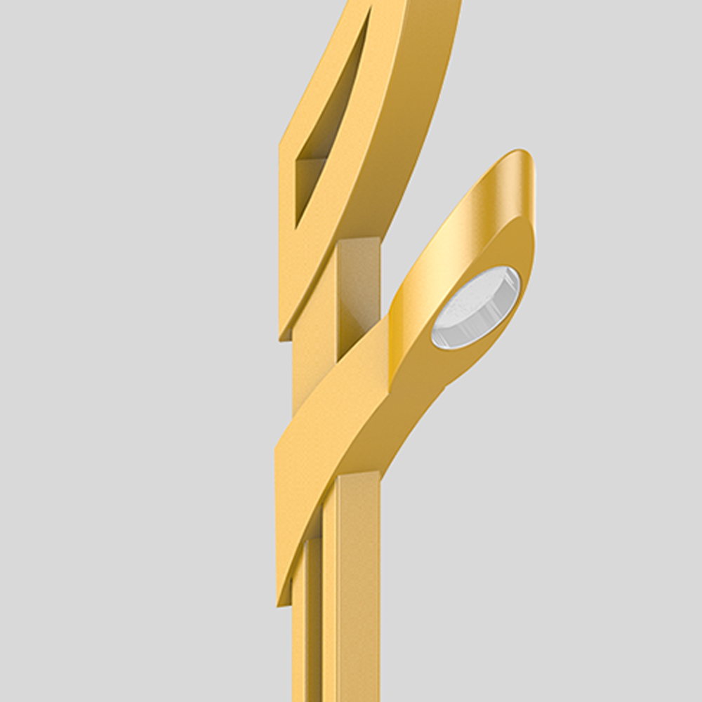 燈臂的設(shè)計(jì)以飛翔的鳳凰姿態(tài)為元素,將鳳凰的尾部特征高度提煉作為燈具的主體造型。