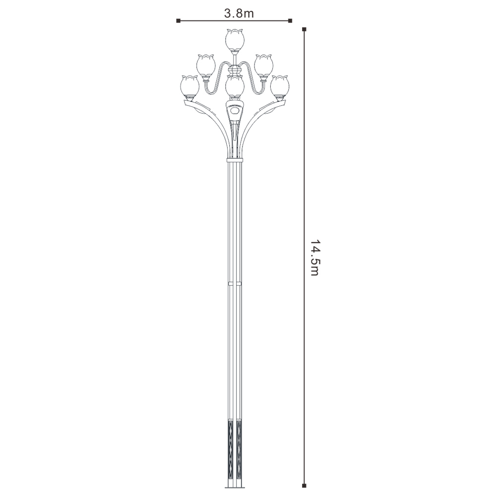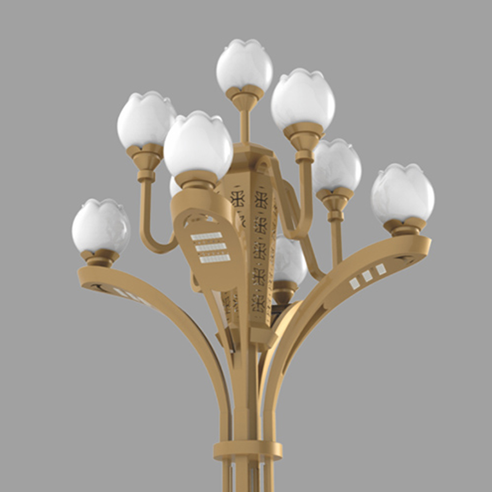 該款燈可以在原有景觀照明基礎(chǔ)上,增加了功能照明,使功能照明和景觀照明完美結(jié)合??蓪ED光源巧妙的配置于戶外文化定制燈具中,替代傳統(tǒng)鈉燈及節(jié)能燈光源,使用革命性創(chuàng)新,在不影響使用及美觀的情況下,降低該類裝飾性景觀路燈的功率密度,切可在桿體內(nèi)側(cè)加裝華體單燈智能照明管理系統(tǒng)。