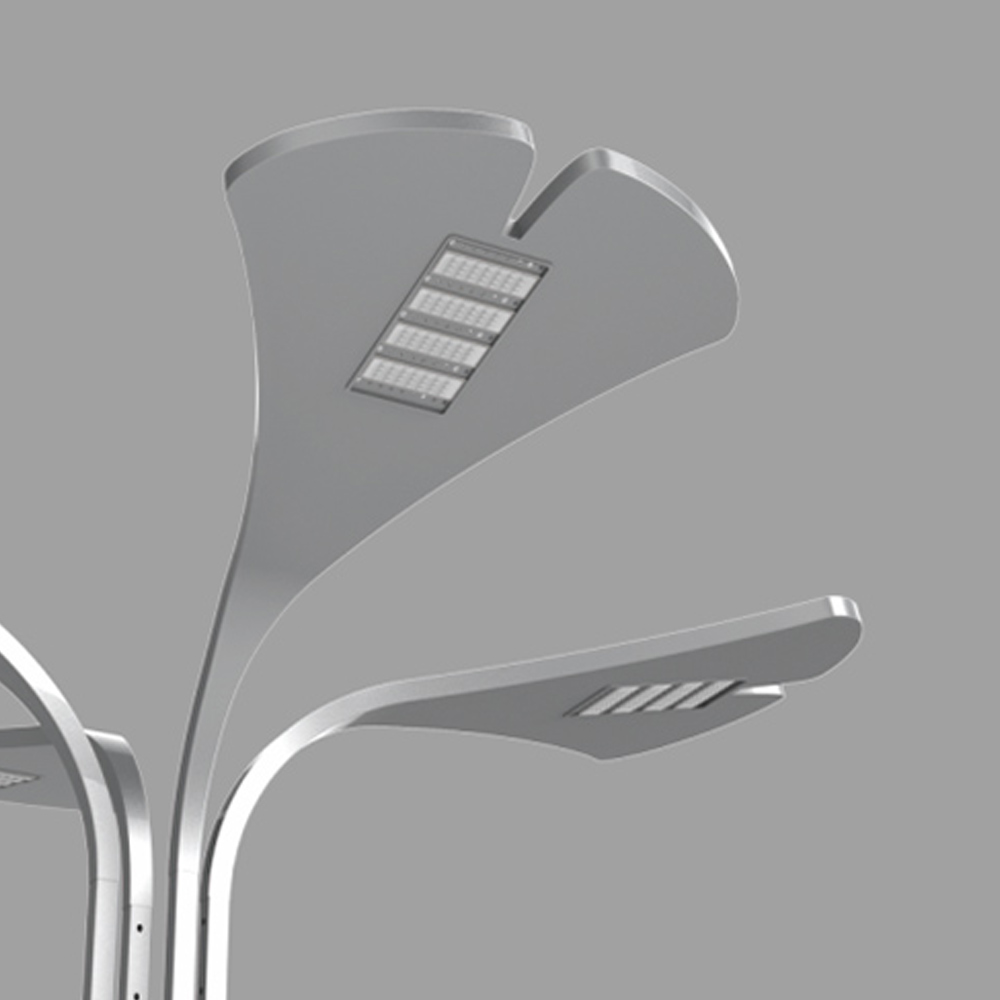 該燈將銀杏枝葉的形態(tài)作為元素,進行設(shè)計開發(fā)的一款新型多頭道路燈;
