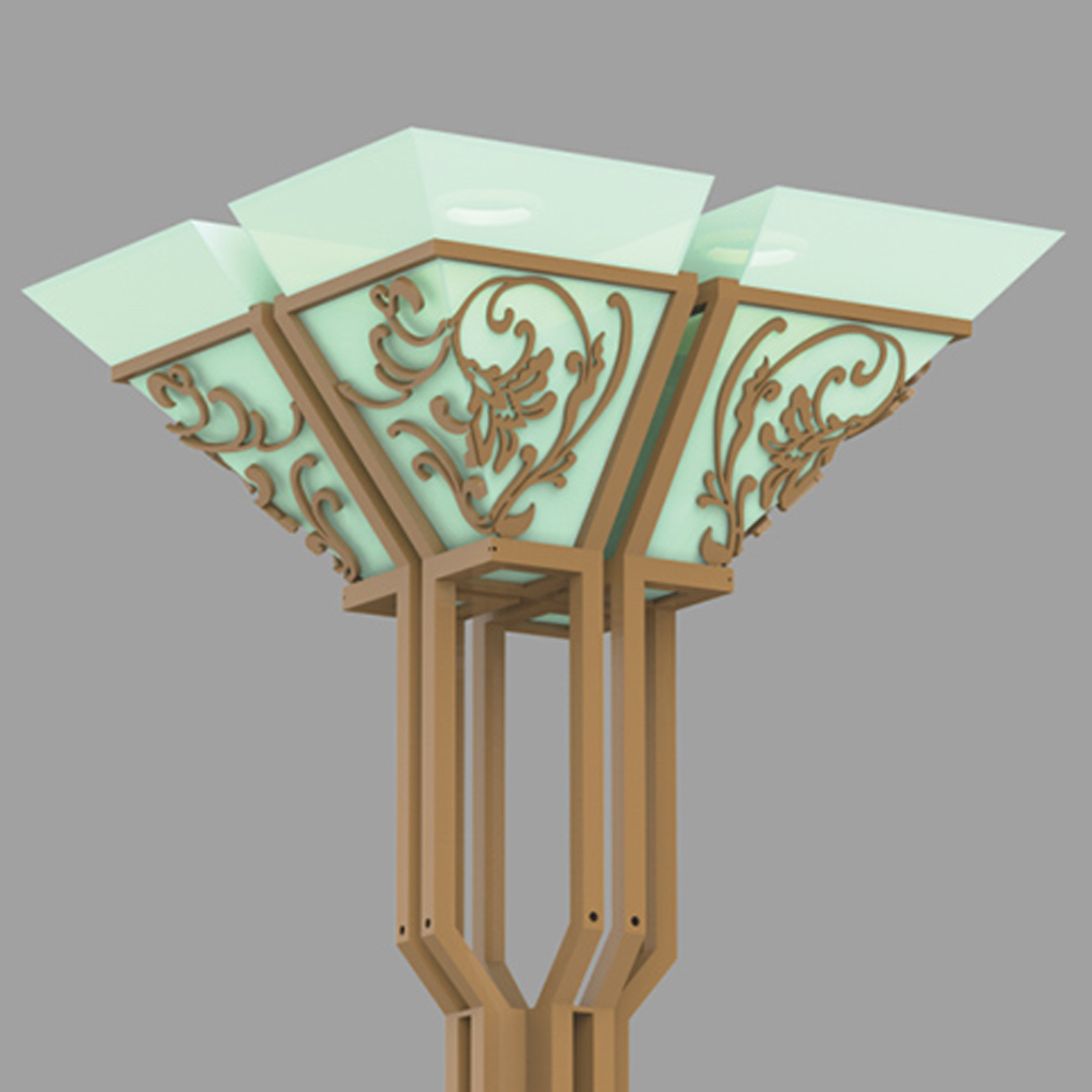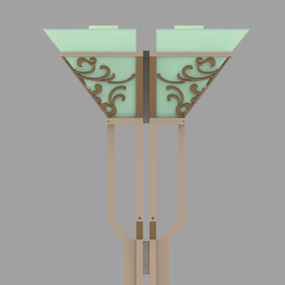 燈桿外形充滿幾何感,增強了立體效果,從整體來說它是一款亦古亦今的設計。