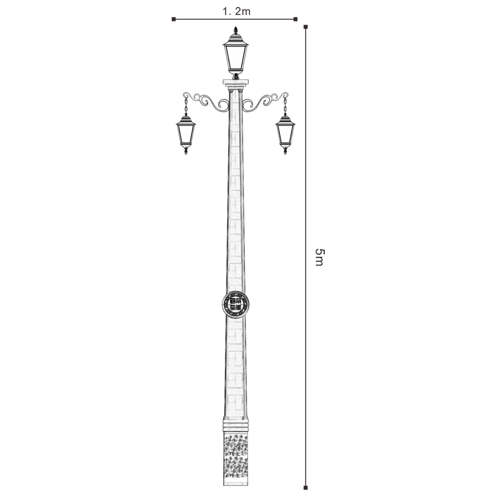 該燈型為景觀性庭院燈。用于塵世景觀步道。也可用于廣場及公共場所的出入口。燈型主體、桿體、底座材質(zhì)為金屬剛件表面防石漆,可配光源LED/節(jié)能燈。