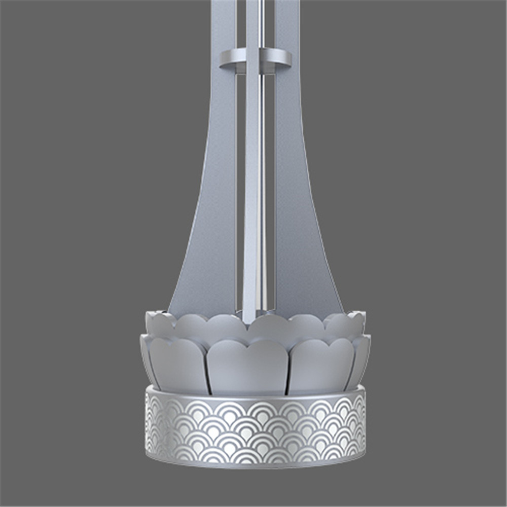 現(xiàn)代的蓮花抽象成佛教金剛杵的形態(tài),內(nèi)斂棚合的造型是雙手合十的禪意,前衛(wèi)而充滿佛性,精致脫俗的蓮花水紋底座詮釋蓮花的出淤泥而不染;